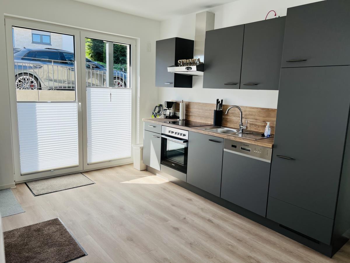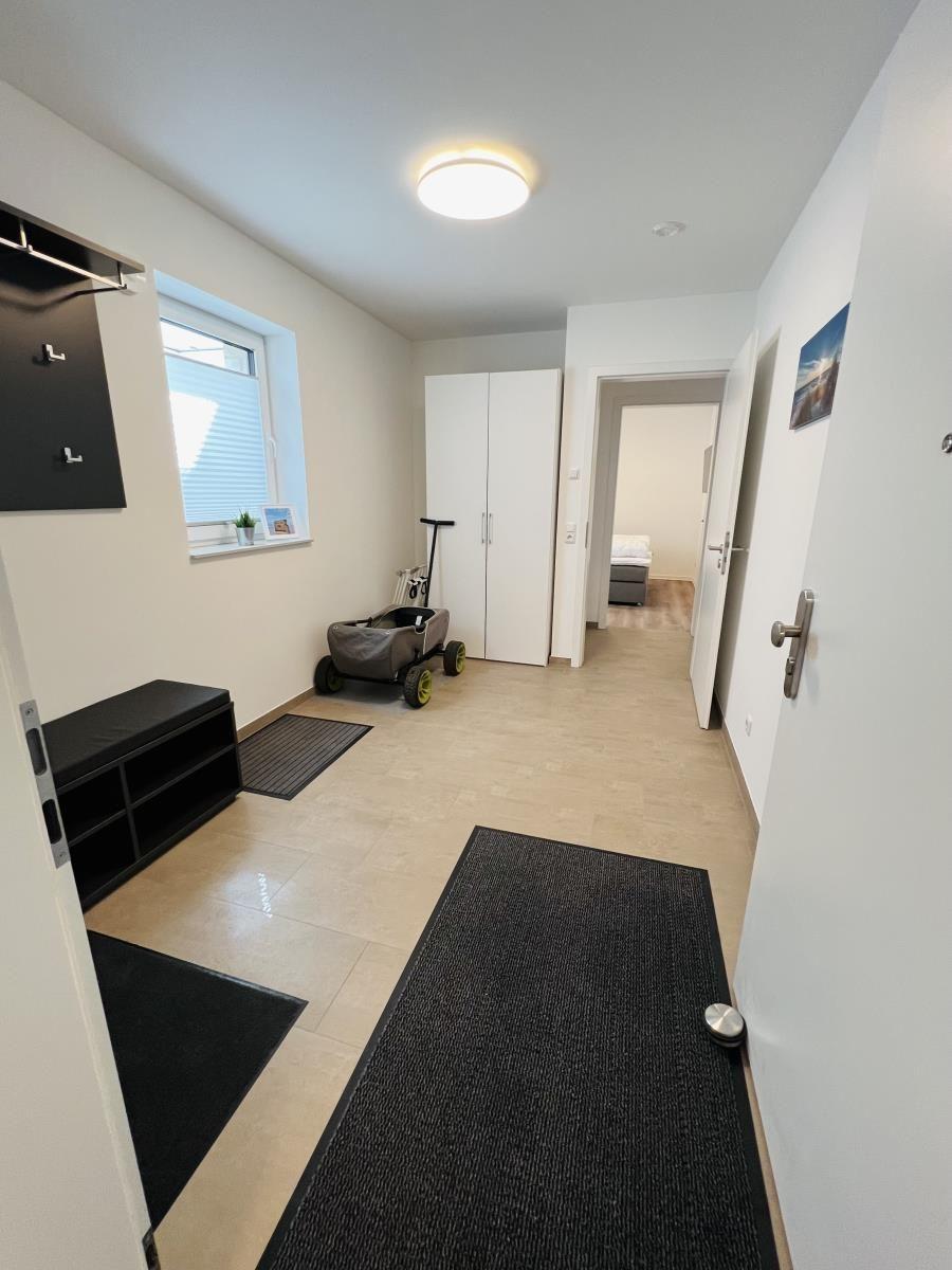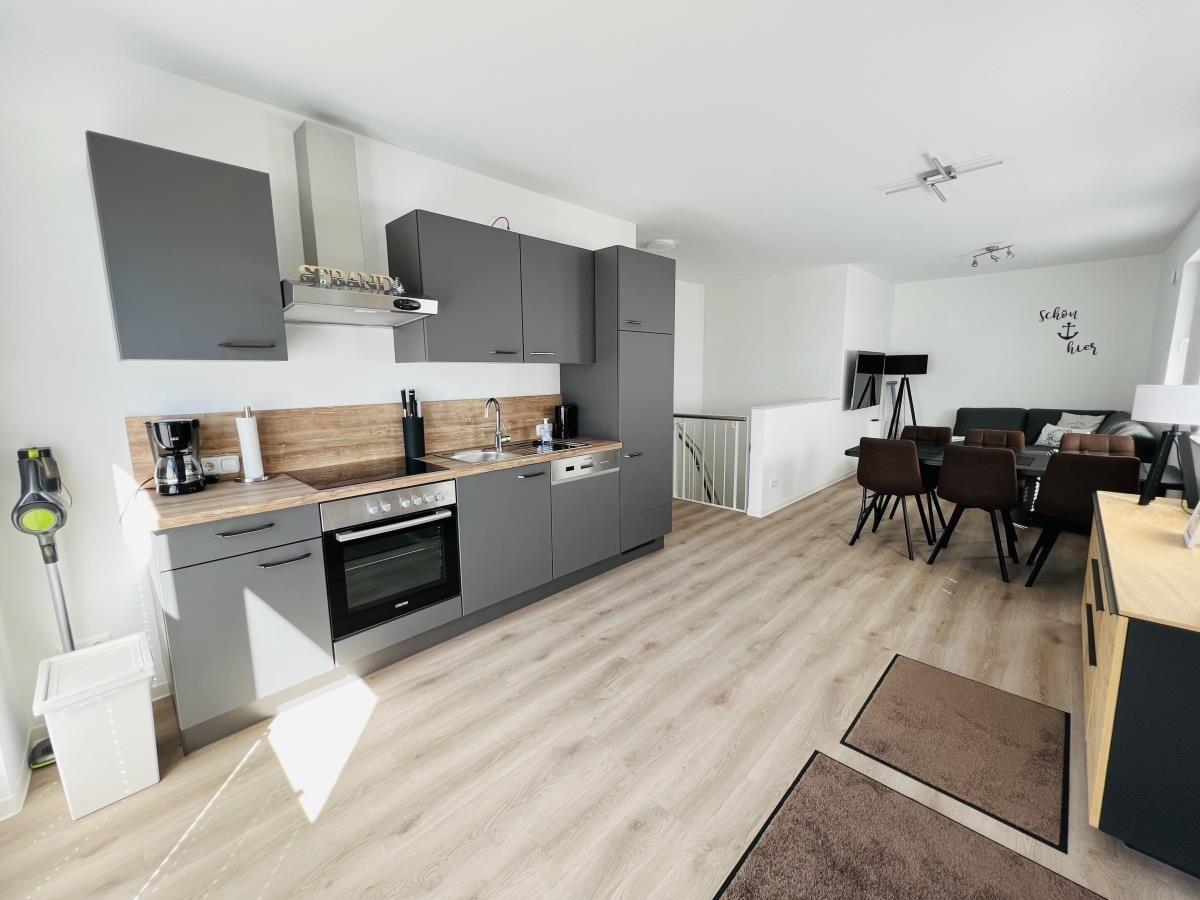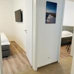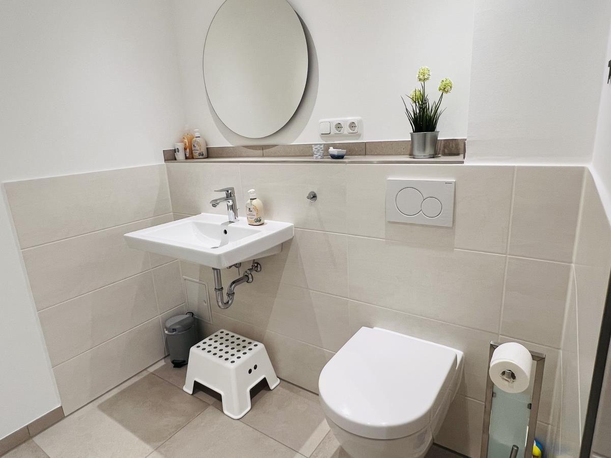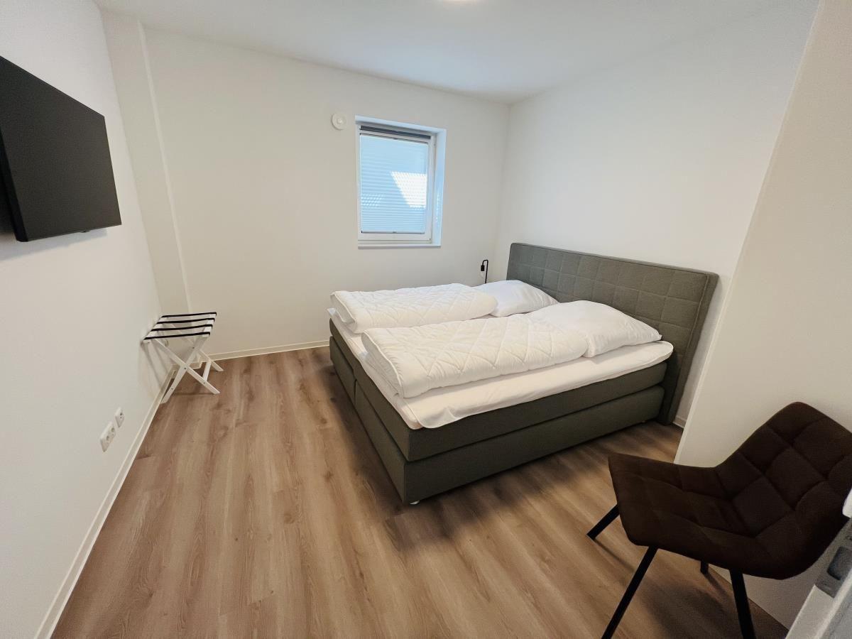 The exclusive and newly built 4-room maisonette apartment offers accommodation for up to 6 guests with a living space of approximately 90m². The apartment, which was first used in September 2022, is accessible via a separate entrance located directly at the parking area. The ground floor features a living room with an open kitchen and dining area that seats up to 6 people, as well as a bedroom with a double bed (180x200 cm) and a stylish bathroom complete with a shower, WC, washbasin, hairdryer, and towel heater. The kitchen is fully equipped with a dishwasher, ceramic cooktop, oven, refrigerator with freezer, coffee machine, toaster, and kettle. The lower level includes two additional bedrooms, both with double beds (180x200 cm) and a shared bathroom. Free Wi-Fi and a washing machine with drying function are also provided. The property is non-smoking and does not allow pets.