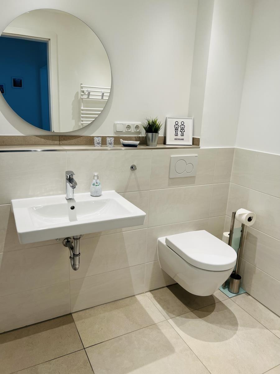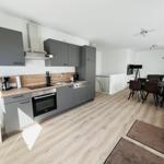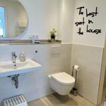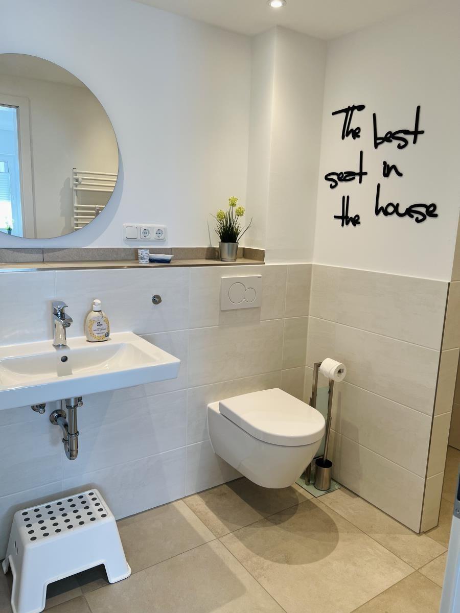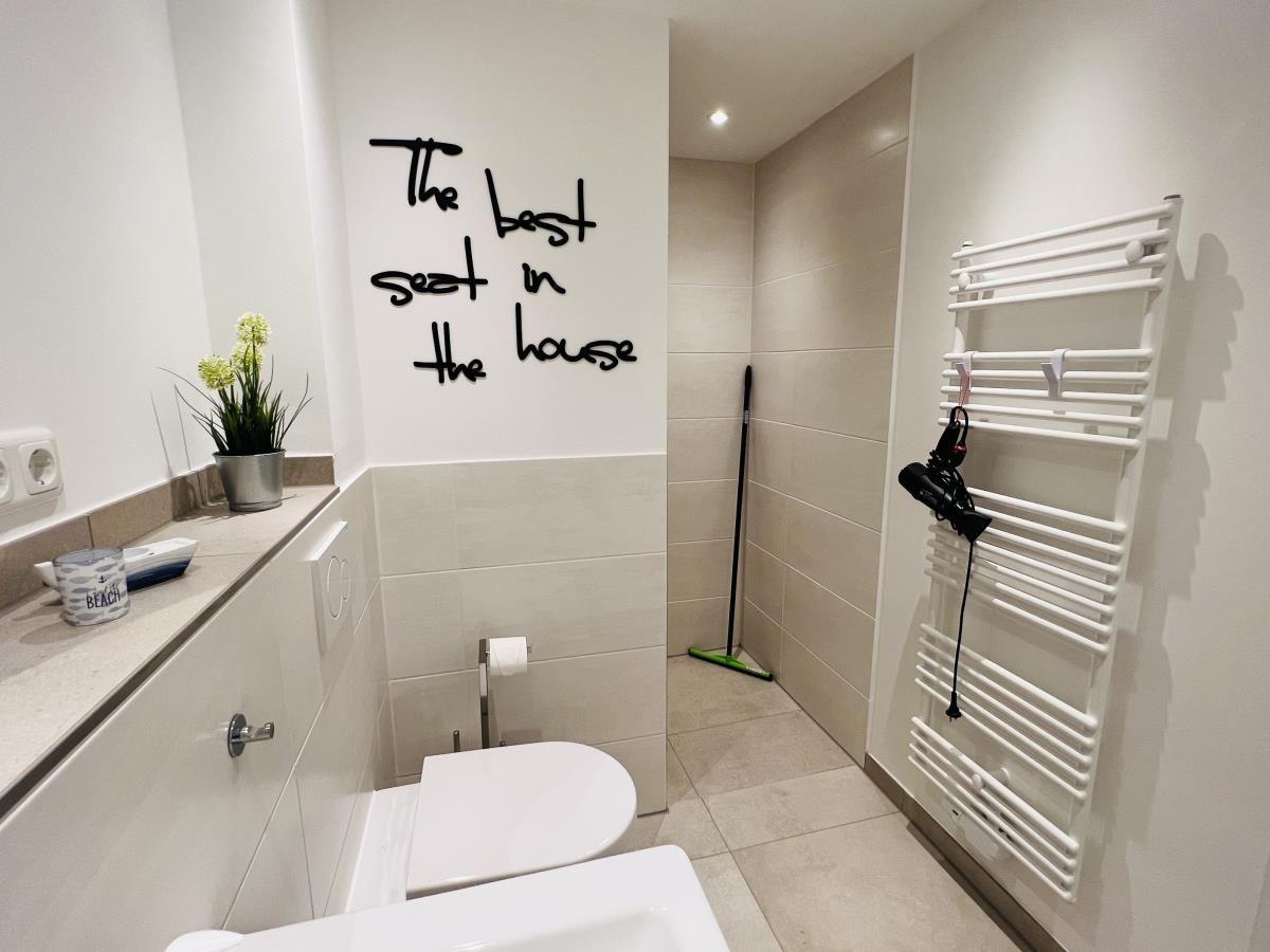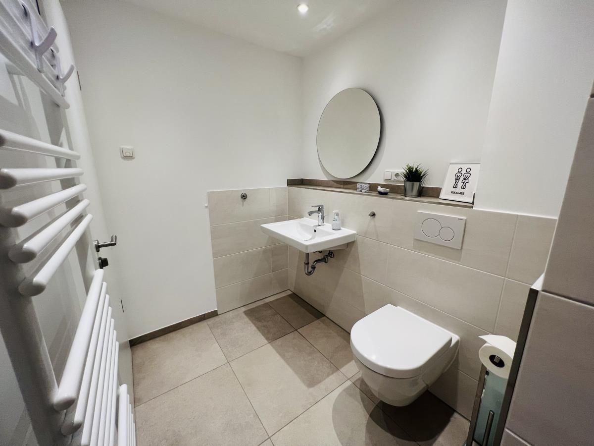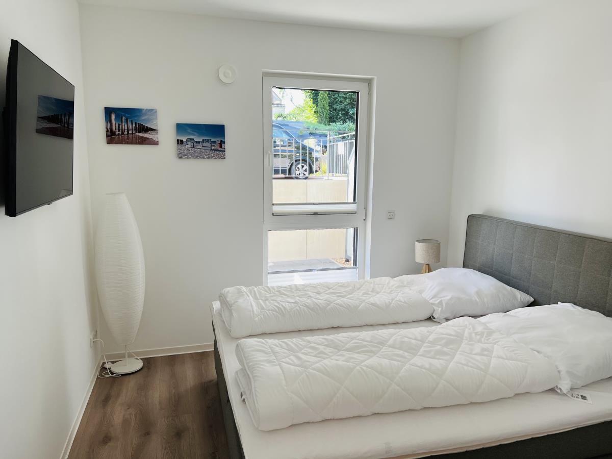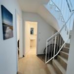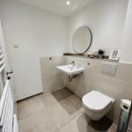 The exclusive and newly built 4-room maisonette apartment offers accommodation for up to 6 guests with a living space of approximately 90m². The apartment, which was first used in September 2022, is accessible via a separate entrance located directly at the parking area. The ground floor features a living room with an open kitchen and dining area that seats up to 6 people, as well as a bedroom with a double bed (180x200 cm) and a stylish bathroom complete with a shower, WC, washbasin, hairdryer, and towel heater. The kitchen is fully equipped with a dishwasher, ceramic cooktop, oven, refrigerator with freezer, coffee machine, toaster, and kettle. The lower level includes two additional bedrooms, both with double beds (180x200 cm) and a shared bathroom. Free Wi-Fi and a washing machine with drying function are also provided. The property is non-smoking and does not allow pets.