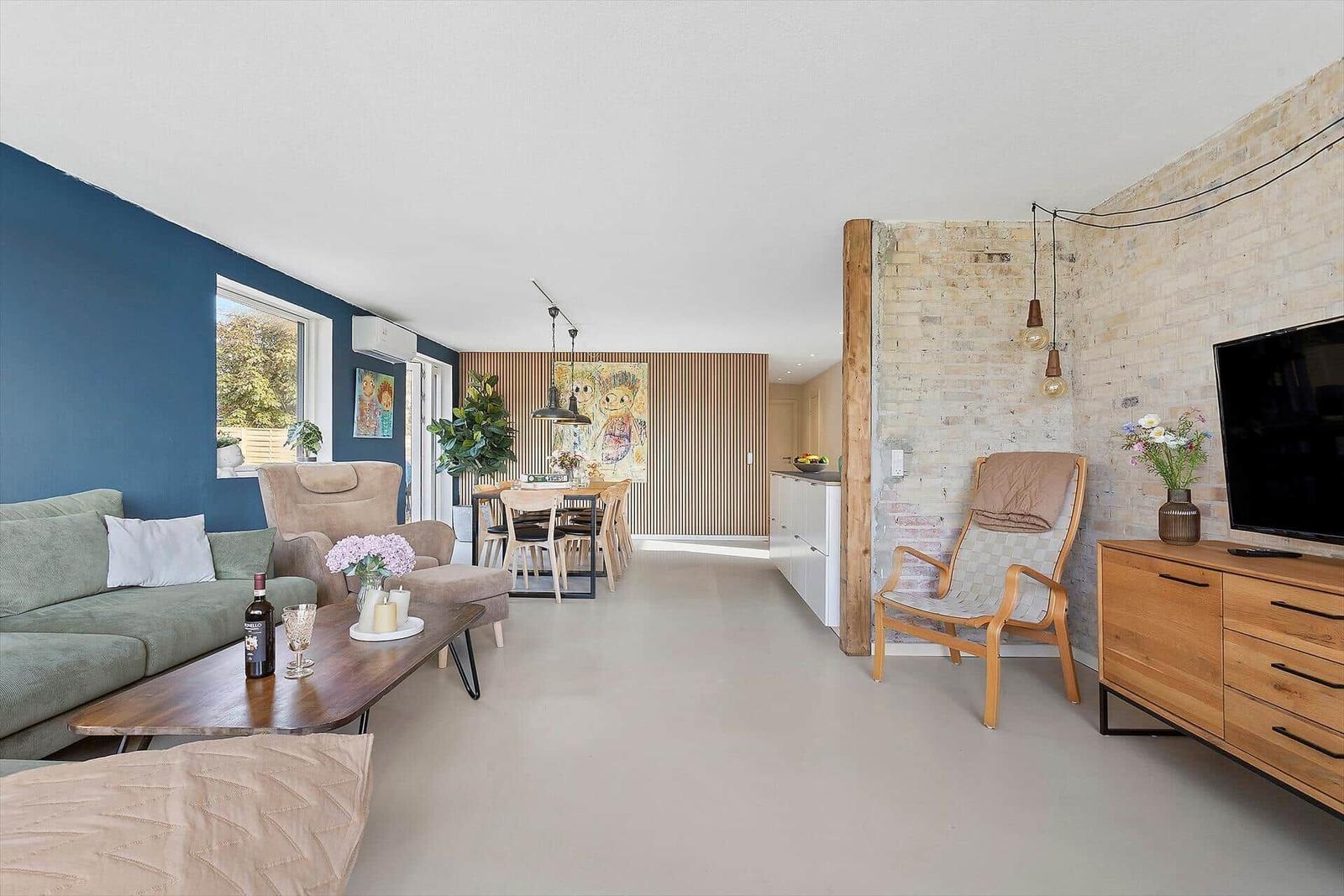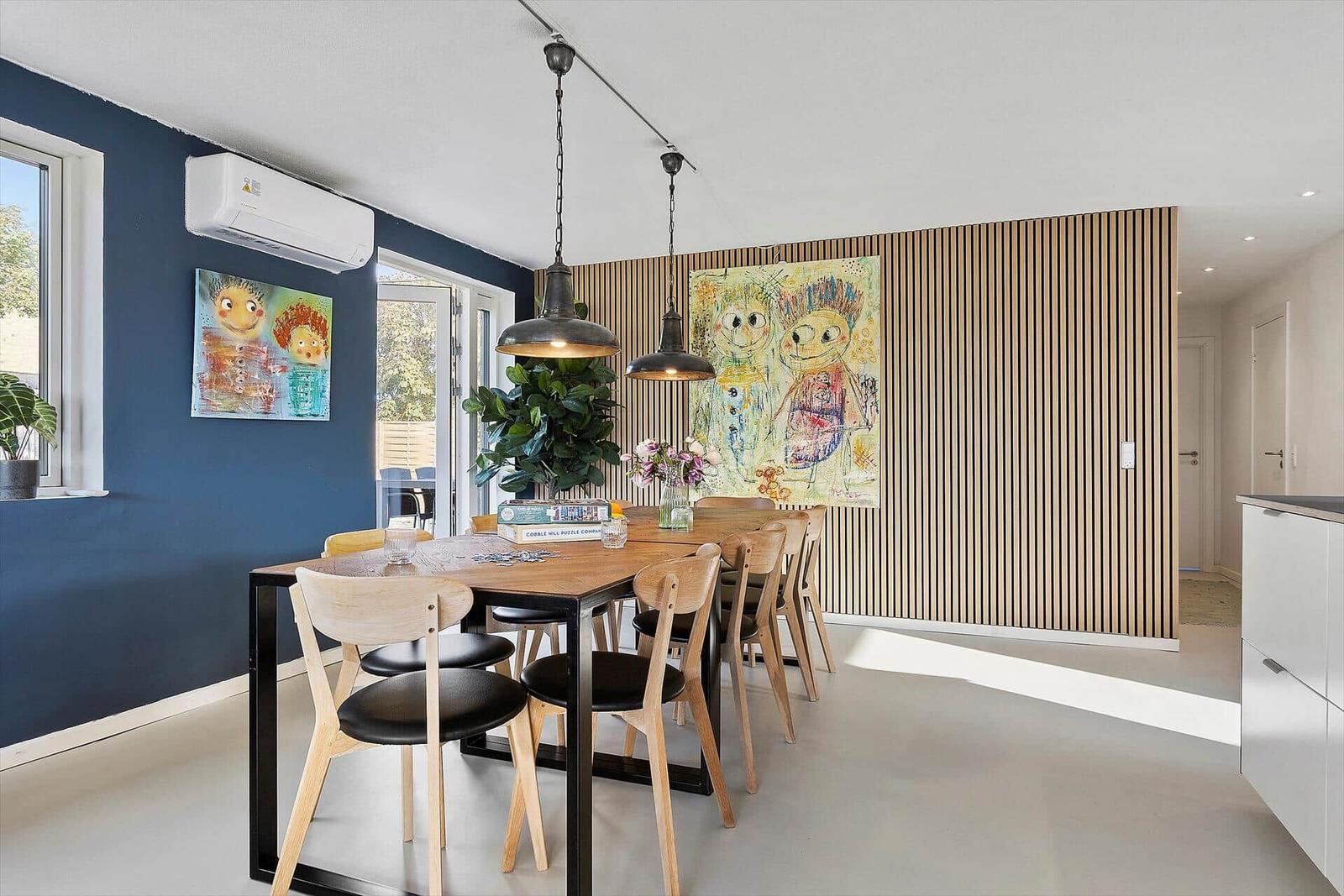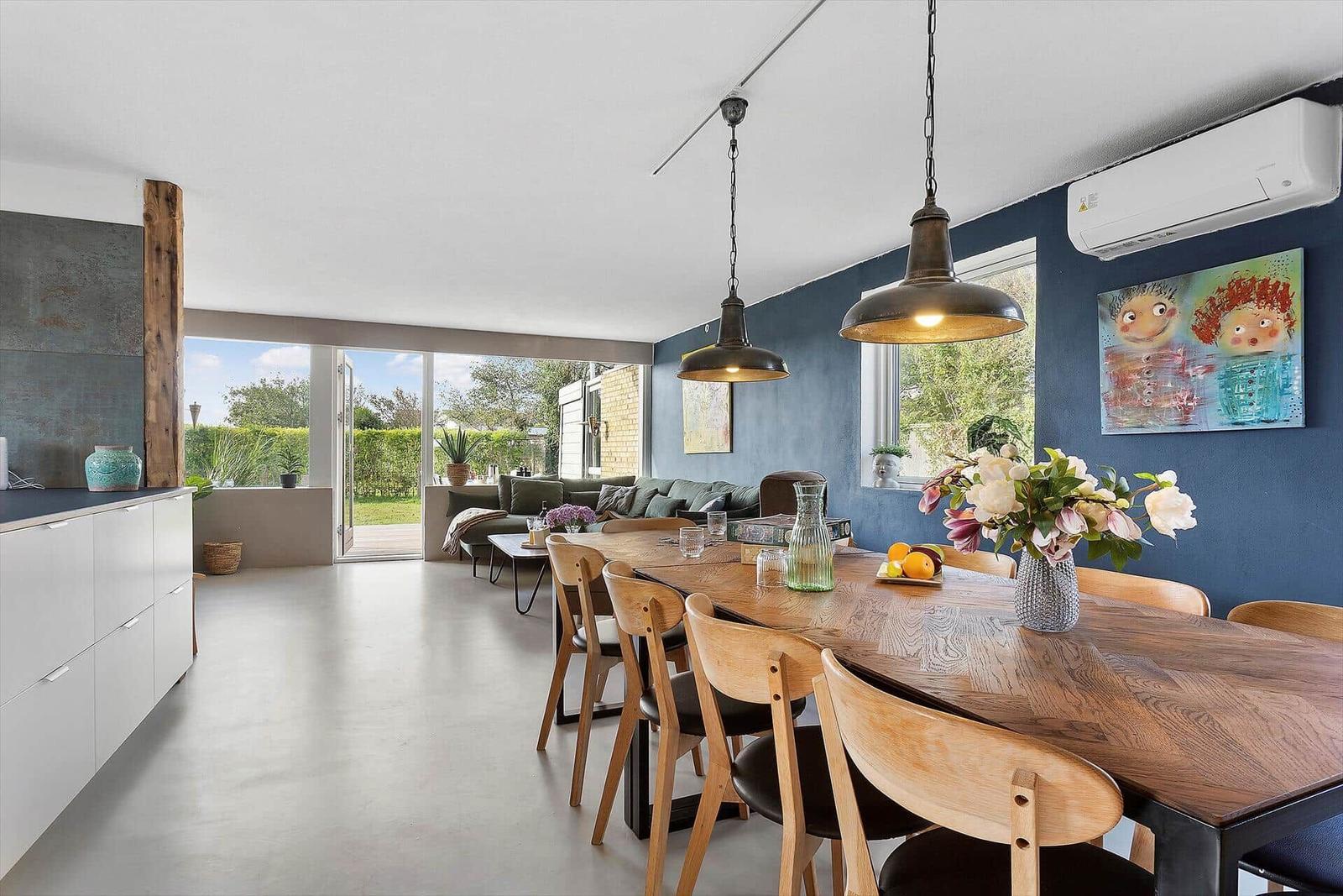 This charming holiday apartment is located in Skagen Strand og By, North Jutland, offering spacious accommodation for up to 8 adults and 2 pets. With a generous area of 124 m² on a 710 m² plot, it features four cozy bedrooms, each equipped with double beds, and two modern bathrooms for added convenience.