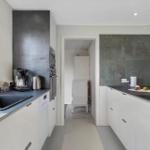 The well-appointed kitchenette includes a refrigerator, microwave, dishwasher, oven, and coffee machine, making meal preparation a delight. For added comfort, the apartment benefits from a washing machine, dryer, and energy-efficient heating, alongside underfloor heating.