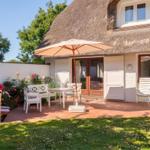 Dat Reethuus is a charming thatched-roof holiday home located in a quiet cul-de-sac in St. Peter-Ording, accommodating up to 5 guests. The 135 sqm property features a cozy entrance hall leading into a spacious living area with a fireplace and an extensive library. A large dining table invites family gatherings, while the fully equipped kitchen includes a dishwasher, refrigerator, freezer, oven, and ceramic cooktop.