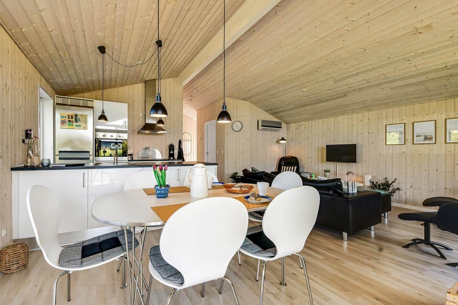 This charming vacation apartment, located in Skaven Strand, Vestjylland, accommodates up to 6 adults and 2 pets. Spanning 78 m², it features a cozy and inviting interior complemented by modern amenities. The open kitchen comes equipped with a dishwasher, oven, microwave, refrigerator, coffee maker, and freezer, ensuring a comfortable cooking experience. Families with young children will appreciate the kid-friendly setup, including a high chair. The apartment offers three bedrooms with double beds, one bathroom with a shower, and a combined living and sleeping area with a Smart TV for relaxation. Essential conveniences include free Wi-Fi, underfloor heating, a washing machine, and a tumble dryer. Outside, the expansive 1,201 m² grounds feature a swing and sandbox, perfect for family fun. Only 900 meters to the nearest beach and 800 meters to shopping, this property is ideal for a delightful getaway.