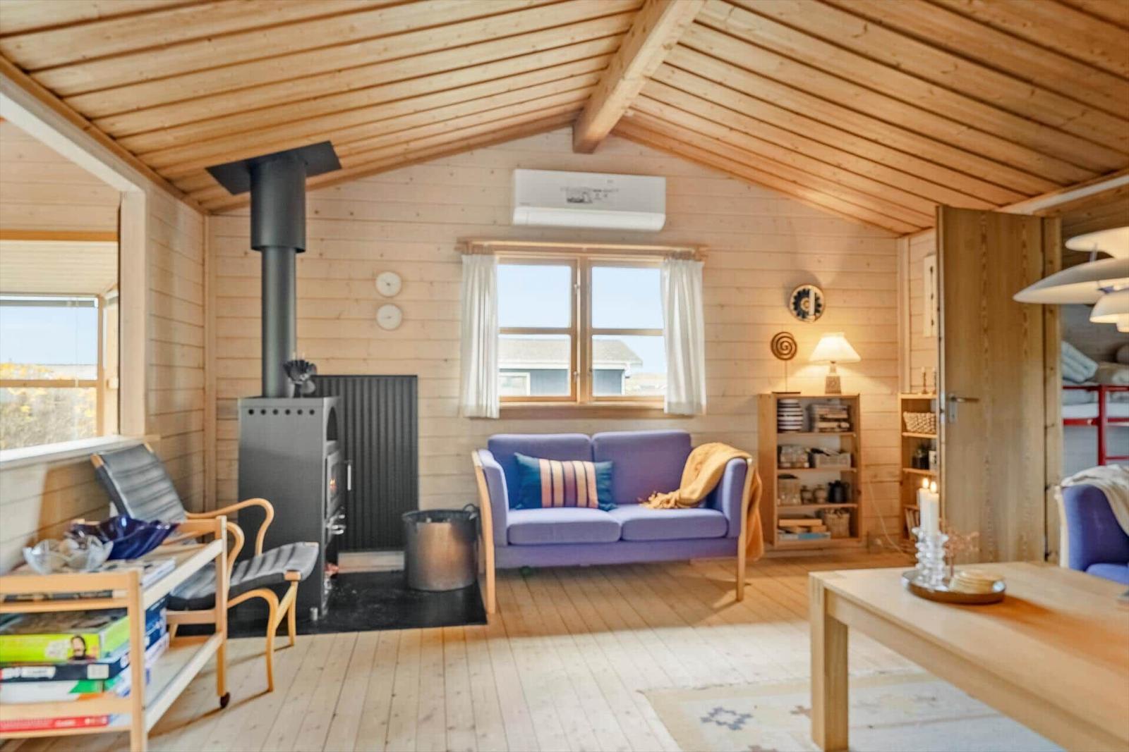 The vacation home in Klitmøller, North Jutland, features a well-appointed outdoor area that enhances the overall experience of guests. Set on a spacious 738 m² plot, the property is situated only 400 meters from the nearest beach, providing easy access to the sandy shores. Additionally, a mere 450 meters away lies shopping opportunities for convenience. The cozy interior with amenities like a fireplace and dishwasher complements the inviting outdoor space. This property, accommodating up to 6 adults and 2 pets, ensures guests have a relaxing retreat in nature. The outdoor area is communal, allowing guests to enjoy the beauty of the surroundings while sharing experiences with others. The 85 m² vacation home, including a 3 m² annex, offers a perfect sanctuary for those seeking both tranquility and proximity to the sea.