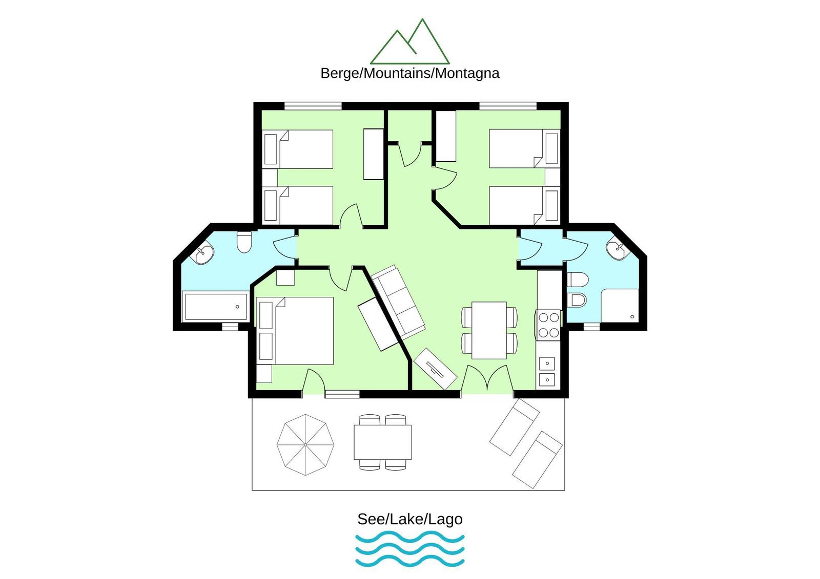 This charming vacation apartment offers a comfortable retreat featuring three well-appointed bedrooms, including one double room with a cozy double bed and two twin rooms with four single beds, ideal for families or groups. The apartment includes two modern bathrooms, ensuring convenience for all guests.