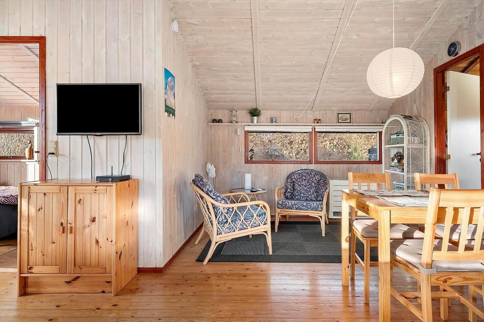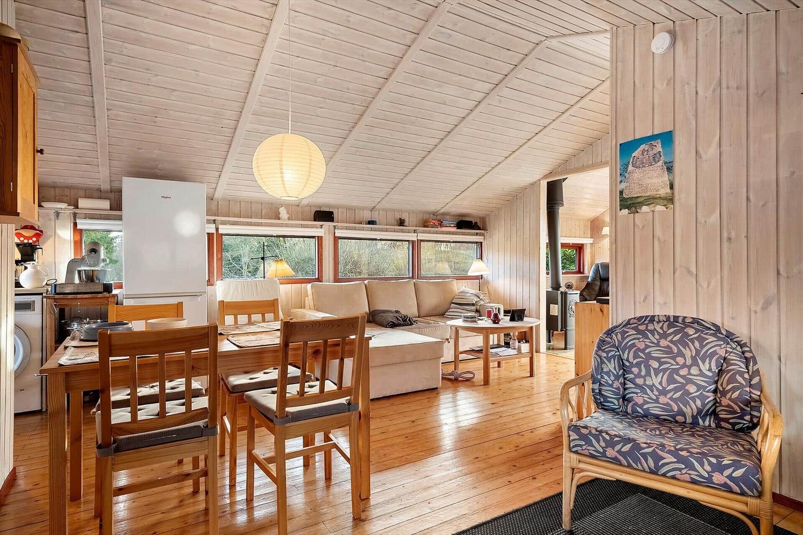 This rental portal presents a charming holiday home located in Bakkebølle Strand, Sydsjælland, ideal for 3 adults and 1 pet. The outdoor area boasts a spacious plot of 1,206 m², perfect for relaxation and enjoyment. Guests can relish the proximity to the beach, just 300 meters away, allowing easy access for sunbathing and beach activities. While the outdoor space is primarily communal, it provides a delightful setting for social gatherings and leisurely strolls. The surrounding environment enhances the experience, with scenic views and a tranquil atmosphere. Additionally, the nearest shopping facilities are conveniently located 5,000 meters from the property. This holiday retreat not only offers cozy indoor amenities, including a fireplace and modern appliances, but also invites guests to enjoy the outdoor beauty of the area.