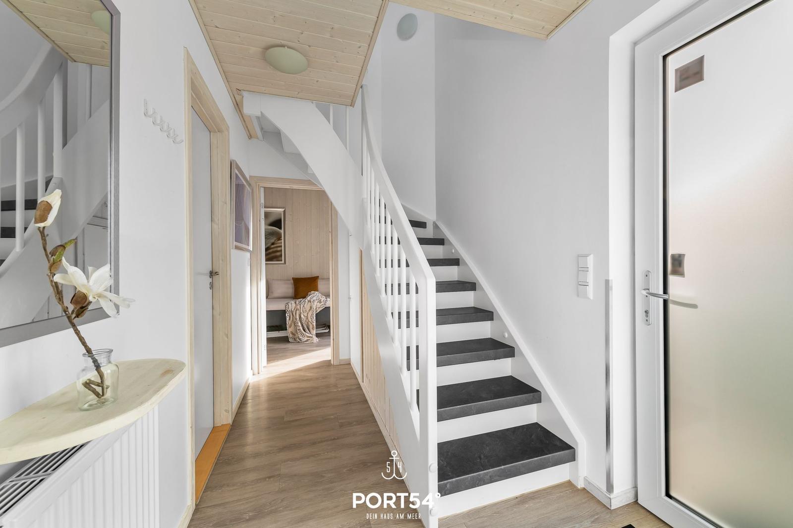 This charming semi-detached house, located in the renowned Marina Wendtorf, offers a unique opportunity for a seaside holiday at the Kiel Fjord. Accommodating up to 4 adults, the two-story property features 68 m² of well-equipped living space, including two bedrooms on the ground floor. One bedroom has two combined single beds (180x200 cm), while the other has two single beds (90x200 cm). Both bedrooms are equipped with blackout windows, and one also has a TV. The ground floor includes a bathroom with underfloor heating, a walk-in shower, a toilet, a sink, and a whirlpool. The first floor boasts an open, light-filled living and dining area, complete with a fully equipped kitchen, a 50-inch Smart TV, a bioethanol fireplace, and access to a balcony. Internet access via fiber optic is available throughout the house. Some amenities may be shared with other guests.