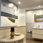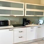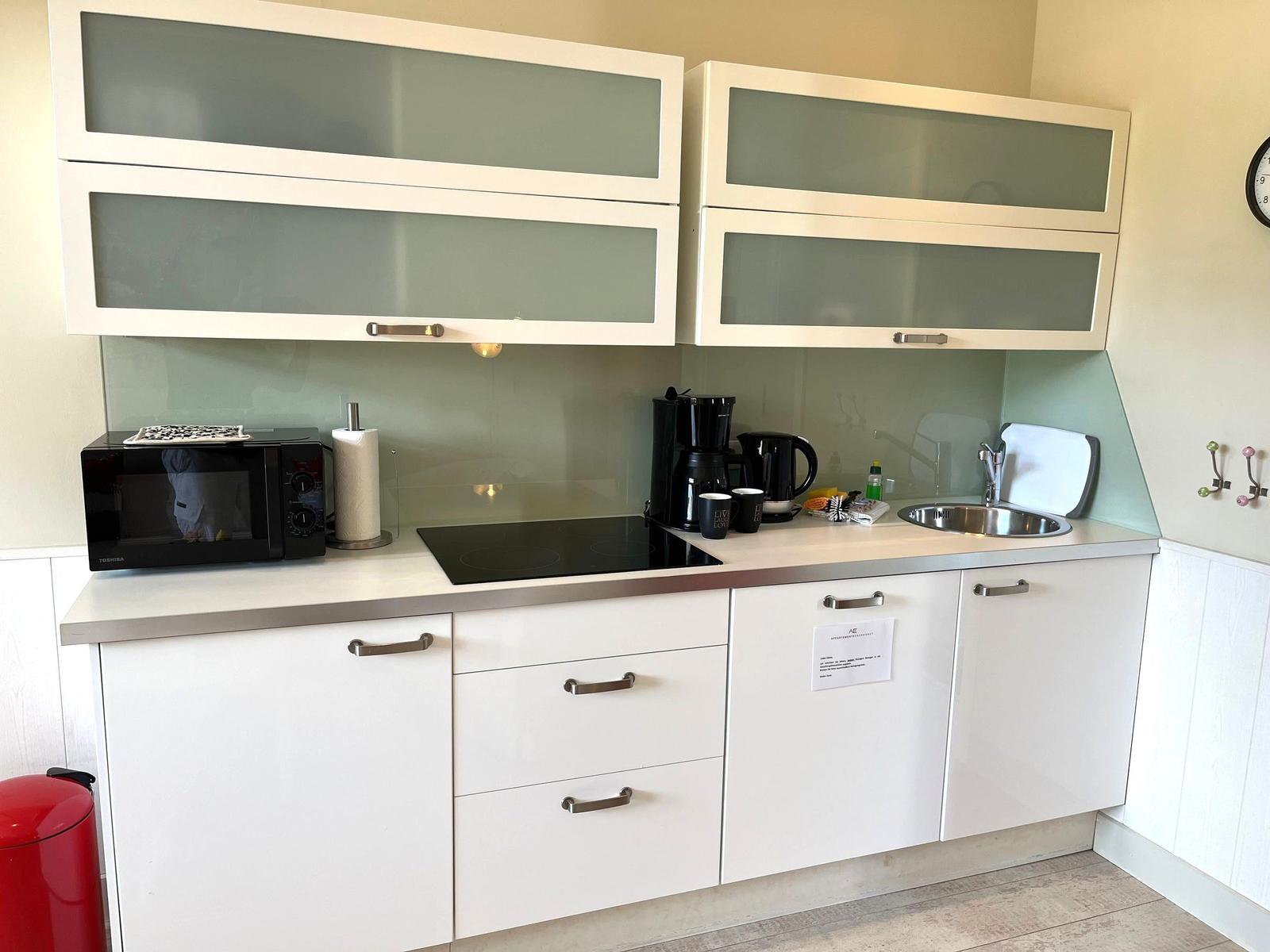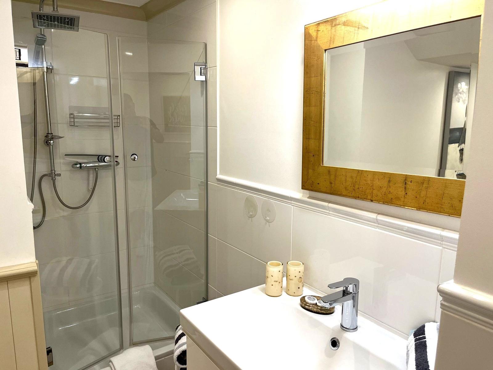 The kitchenette is well-appointed with a microwave, dishwasher, ceramic hob, espresso machine, and standard coffee maker. The comfortable bedroom boasts a double bed and a wardrobe, providing access to the completely renovated shower room with WC, which was updated in 2019.