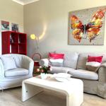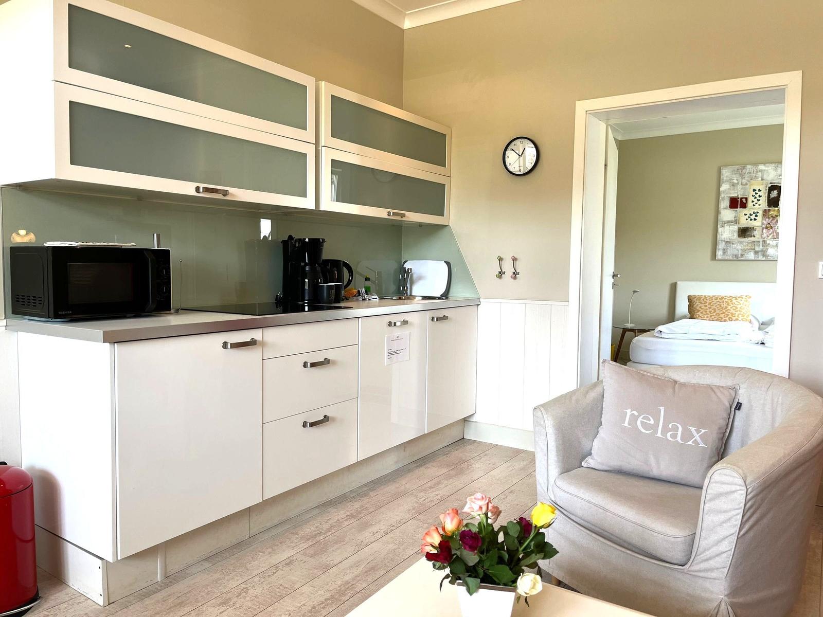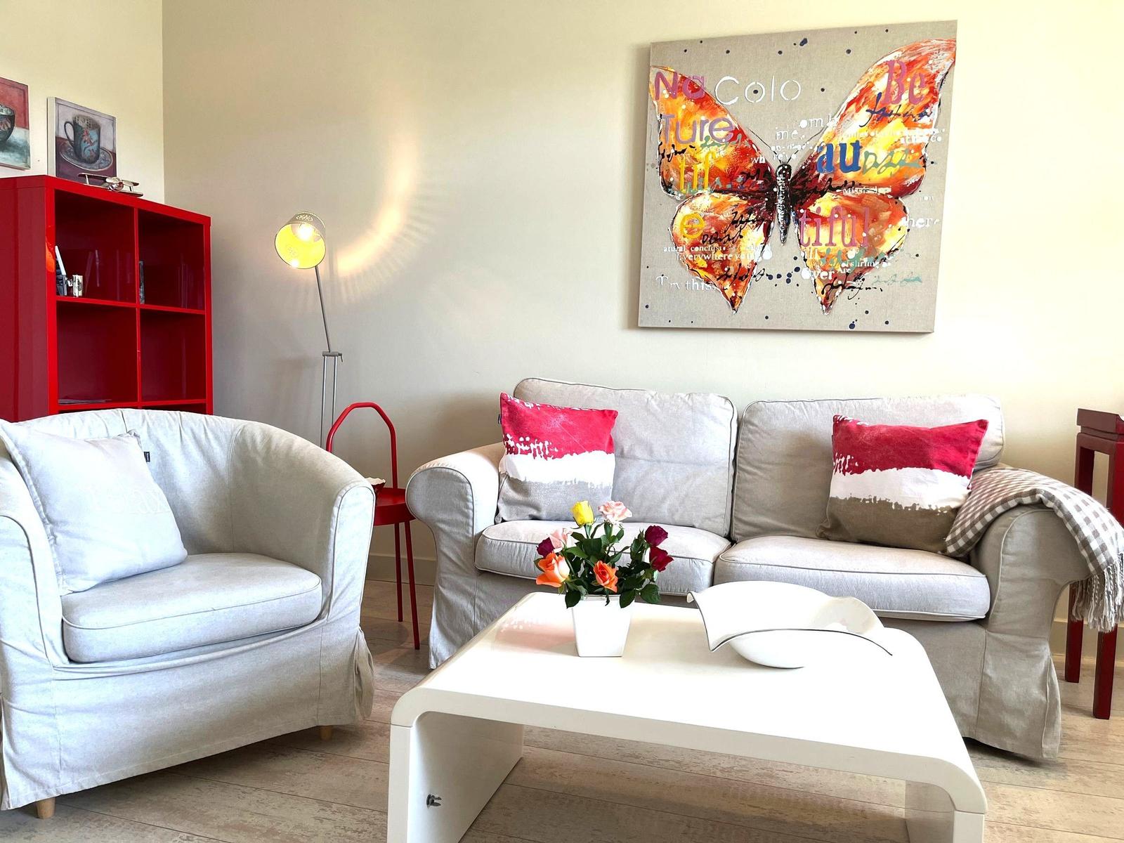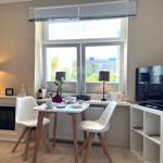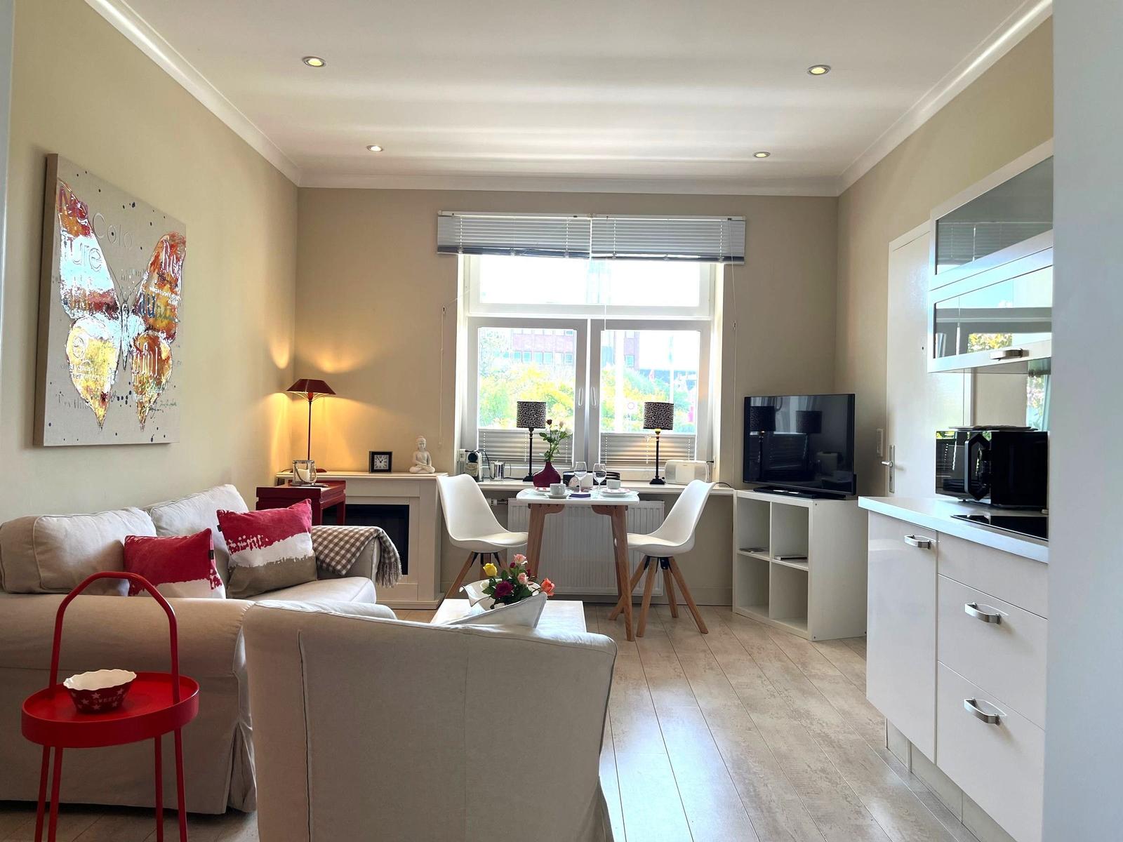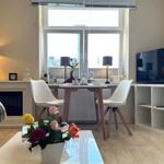 This charming ground-floor apartment, "Austernperle," spans approximately 40 m² and accommodates up to 2 guests. It features a modern yet cozy living/dining area equipped with an electric fireplace, a spacious sofa, a dining table, a flat-screen TV, DVD player, and a stereo system, along with high-speed internet access for entertainment on rainy days.