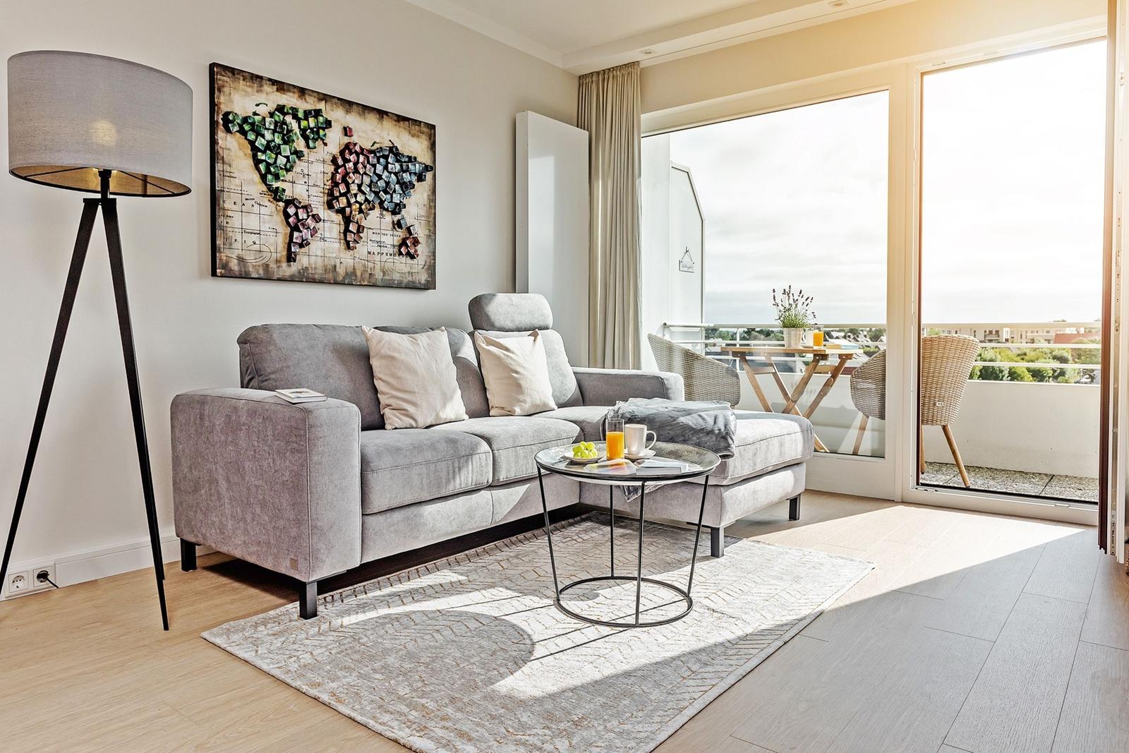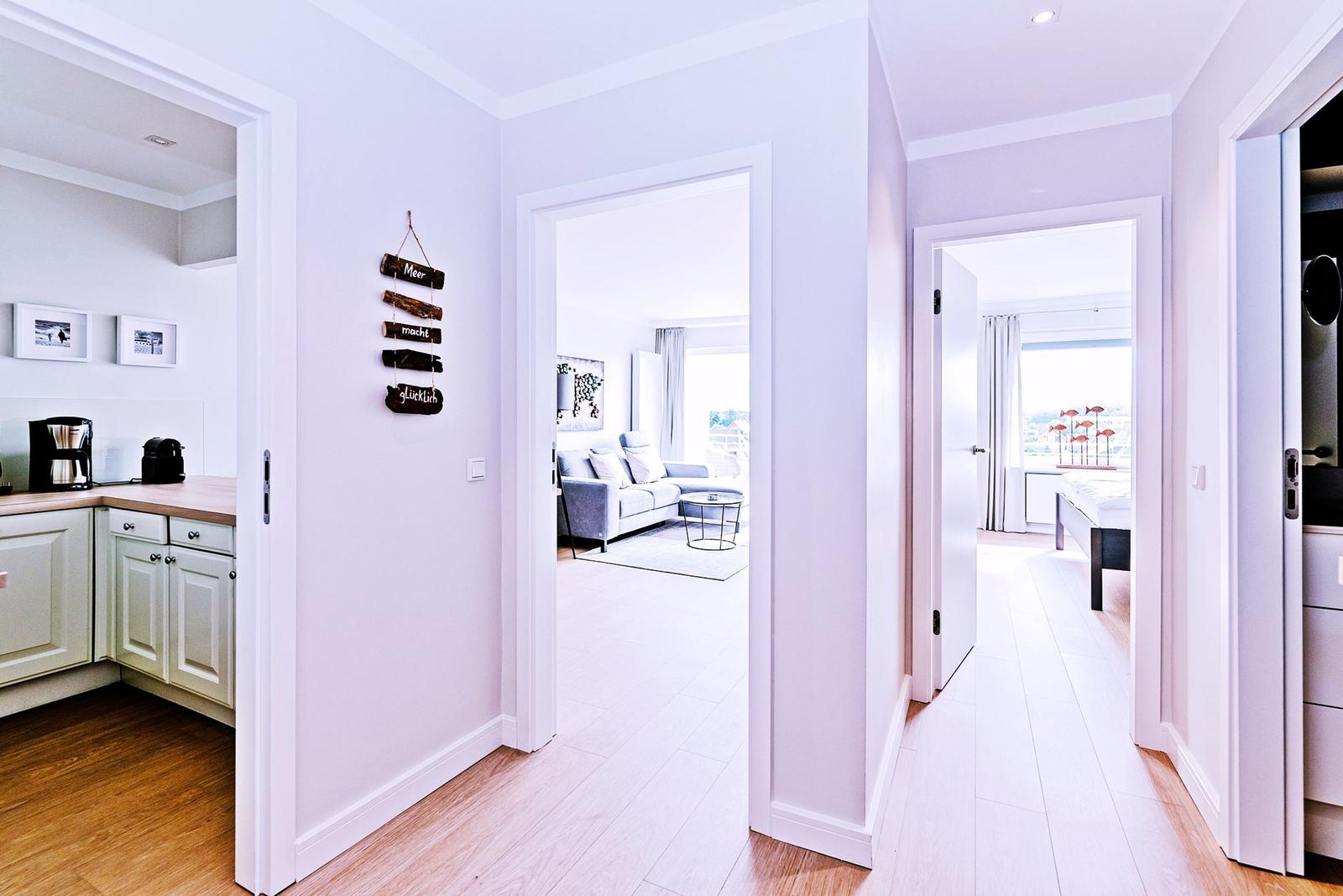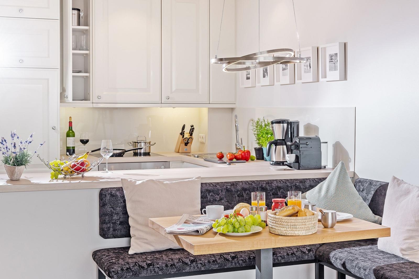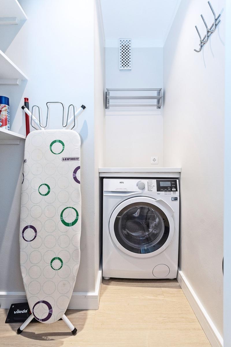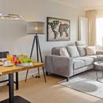Located on the top floor of a well-maintained apartment building, this charming 54 m² corner apartment is designed for two guests. The space features a spacious entrance hall with a wardrobe, a tasteful bathroom with a shower, and a utility room equipped with a washer-dryer. The welcoming bedroom offers ample storage, while the stylish living room provides a cozy atmosphere alongside a separate, fully equipped kitchen. A highlight of the apartment is the nearly 9-meter-long balcony, furnished with comfortable balcony furniture, ideal for relaxation. Additionally, there is complimentary Wi-Fi available (without guarantee). A noteworthy feature is the shared indoor pool available for residents; however, it will be closed for renovation from January 12 to February 15, 2026. A parking space in the tight underground garage is also included, with specific dimensions for vehicle size.