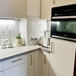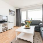 Guests can enjoy the comforts of a bright, renovated apartment located on the first floor, featuring a spacious west-facing balcony, ideal for relaxing evenings. The apartment’s modern decor and furnishings ensure a delightful stay.