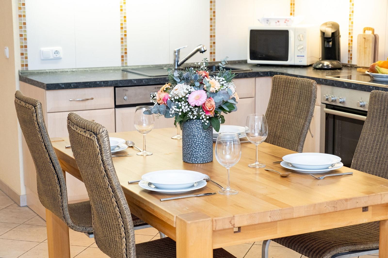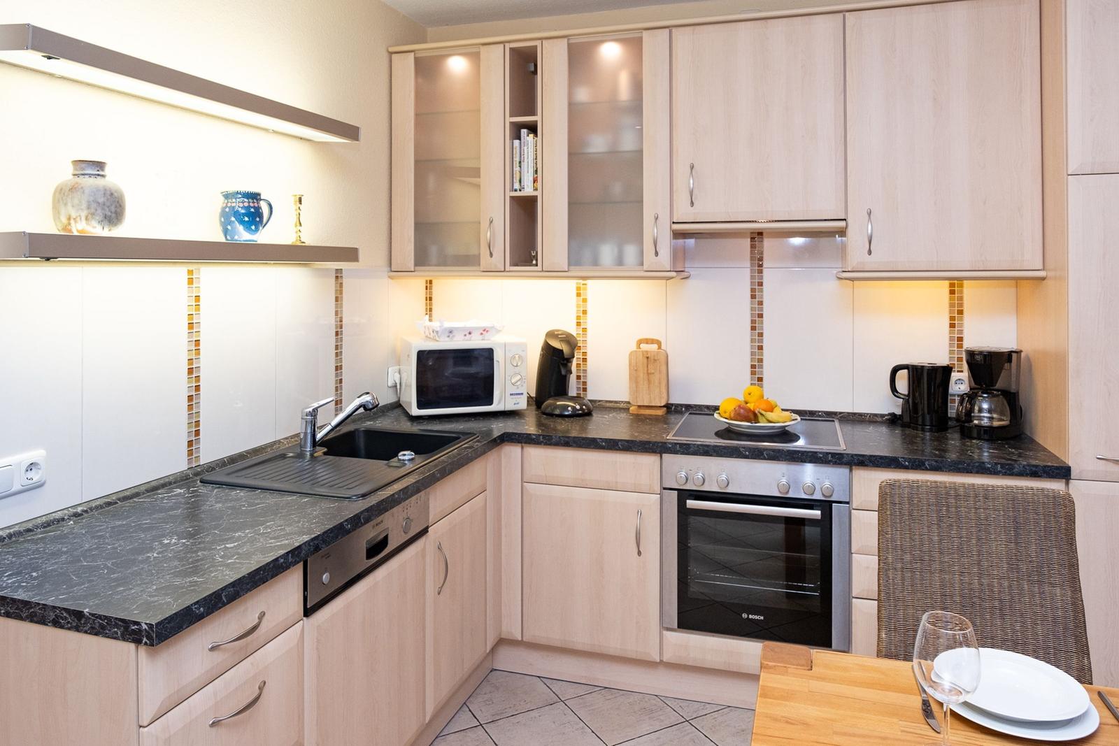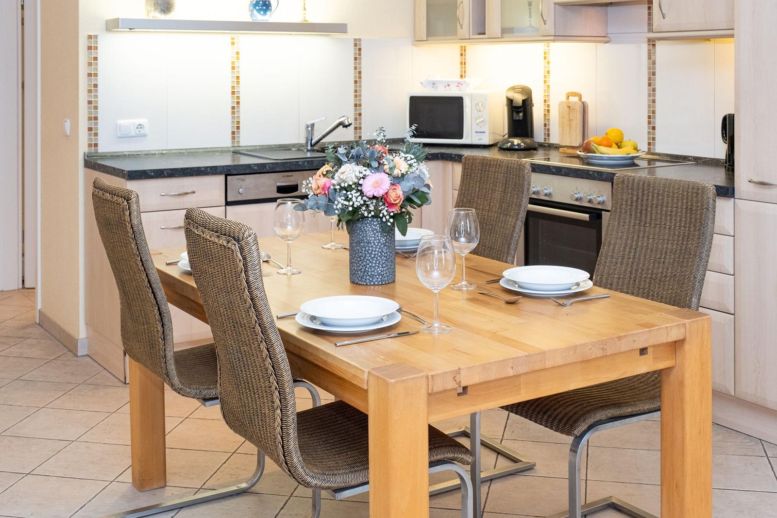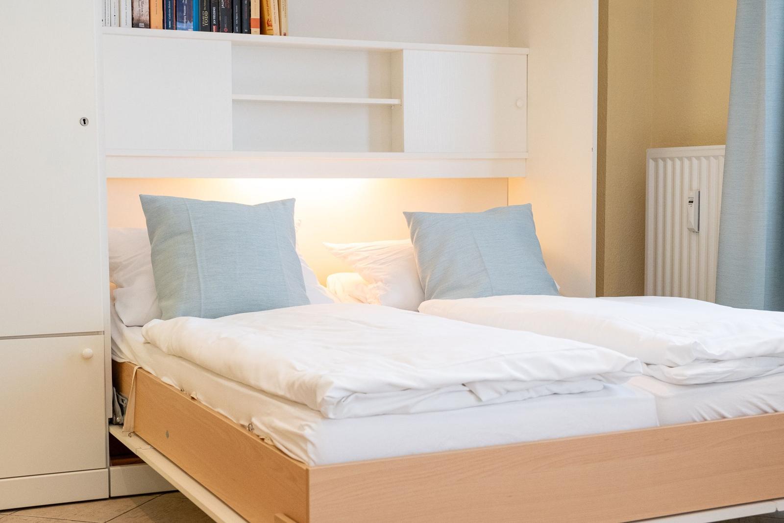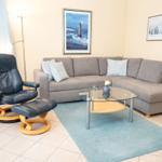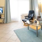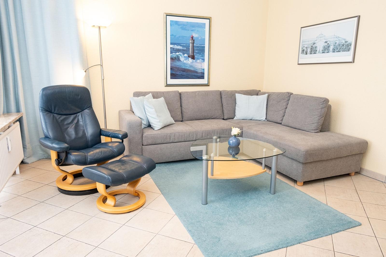 The Norderhoog apartment is centrally located in Westerland, Sylt, just a 5-minute walk from the pedestrian zone on Friedrichstraße. This modern apartment features a tiled floor and a well-equipped kitchen with a spacious dining area. The cozy living area includes two sofas and a double wall bed, providing ample comfort. An interior bedroom offers ventilation through the living room, enhancing the airflow throughout the space. Guests have access to communal facilities, including a sauna and an indoor pool; however, it is important to note that the pool will be closed for renovations from January 12 to February 15, 2026. Additionally, the apartment comes with a designated garage parking space (up to 1.70 meters high, 1.90 meters wide, and 5.00 meters long). Wi-Fi is available, but its connectivity is not guaranteed.