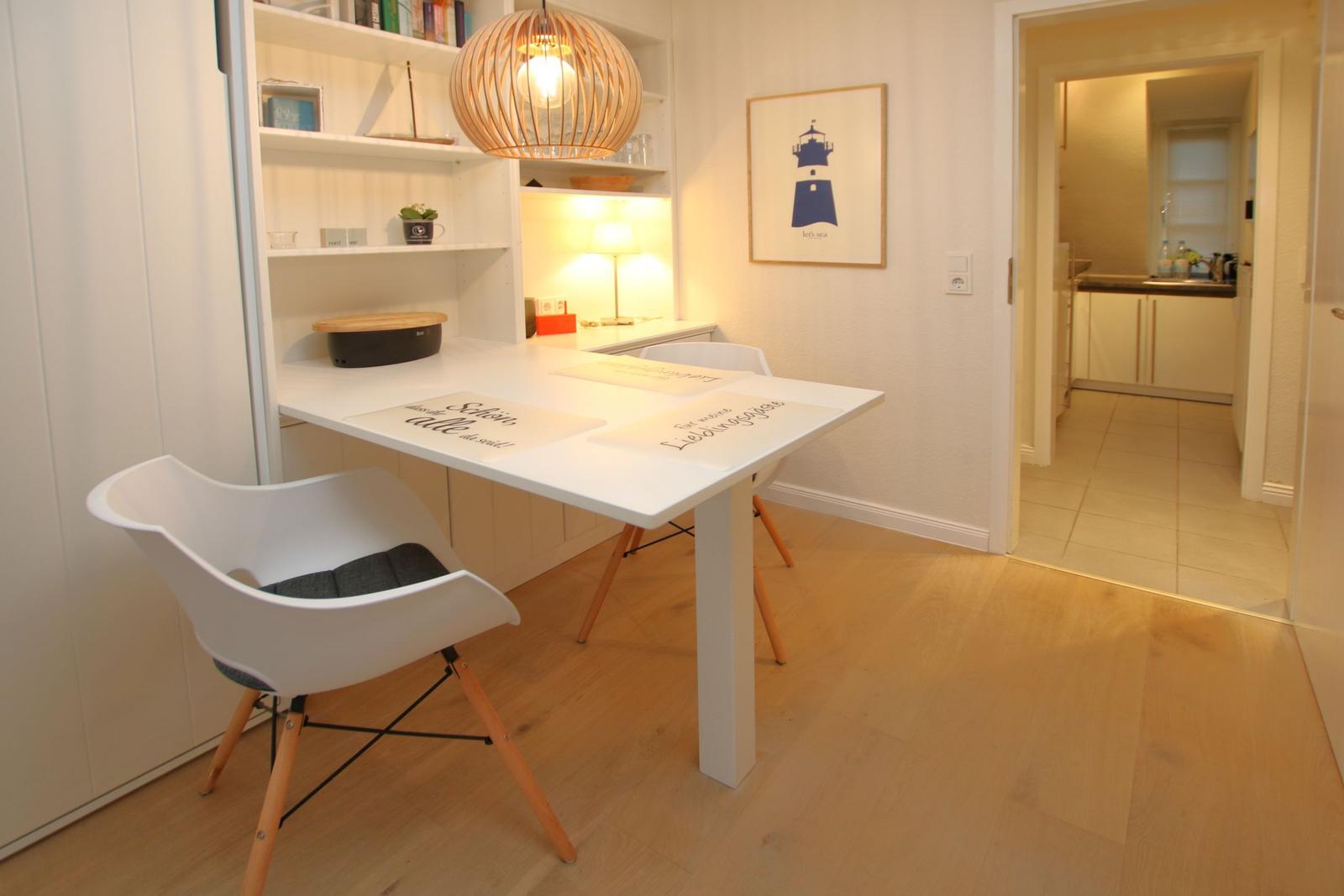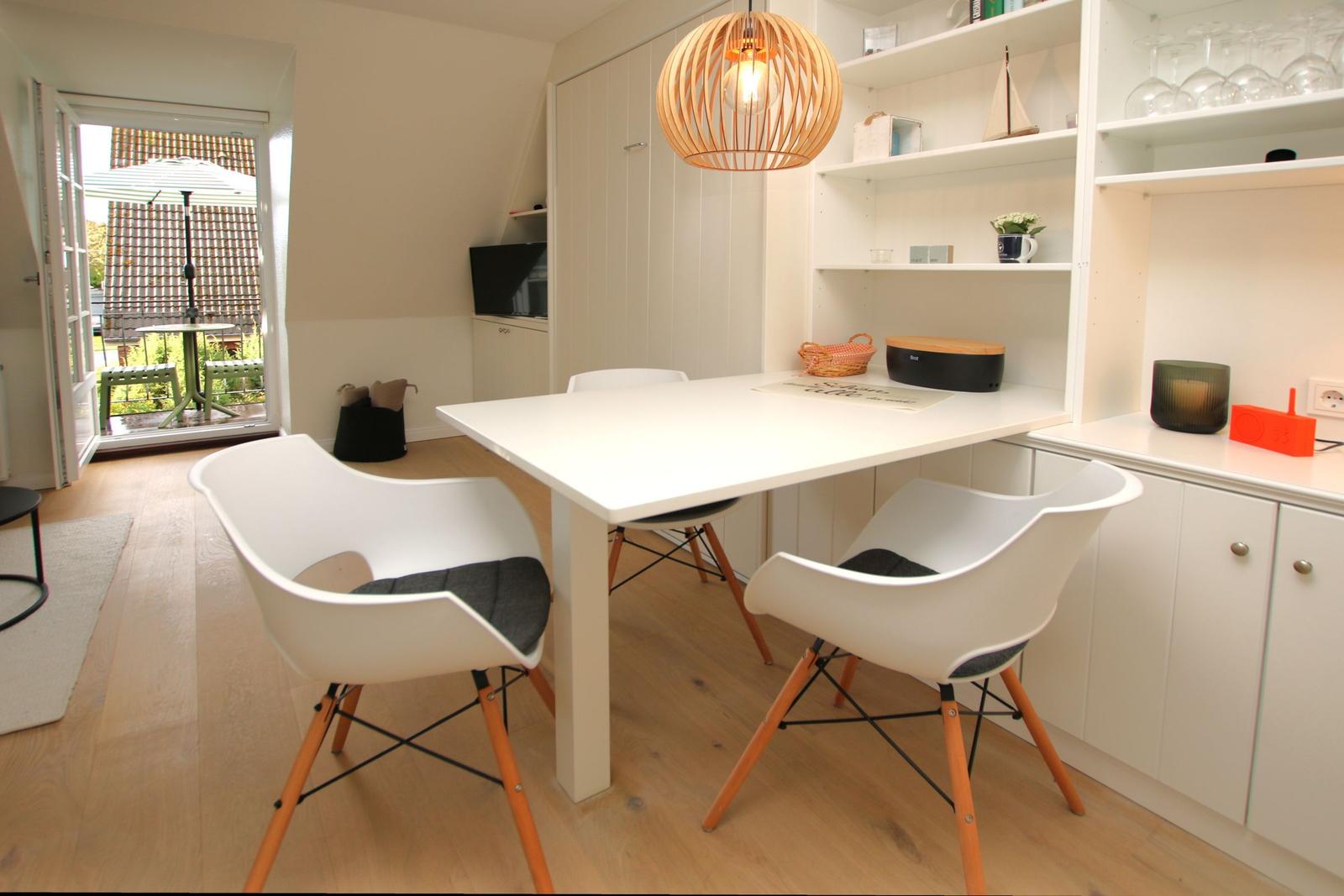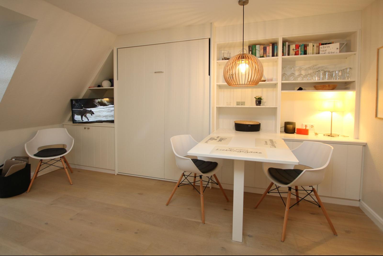 This holiday apartment offers a comfortable and well-equipped retreat for its guests. Featuring a cozy bedroom with three single beds, it is designed to accommodate various needs. The inviting living-sleeping area provides additional flexibility, ensuring ample space for relaxation and rest.